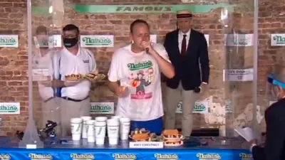 36-летний американец съел 75 хот-догов за 10 минут, обновив мировой рекорд: видео