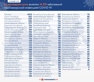 За последние сутки в России выявлен 14 231 новый случай коронавируса в 84 регионах. Из них 25,2% не имели клинических проявлений болезни. Зафиксировано 239 летальных исходов. За сутки в России полностью выздоровели 7920 человек.