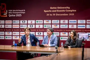 В конце года любители шахмат традиционно получают классное шоу — чемпионат мира по рапиду и блицу. В этом году турнир принимает Доха. И первая часть прошла для российских болельщиков просто замечательно: у мужчин серебро взял Владислав Артемьев, у девушек чемпионский титул забрала Александра Горячкина.