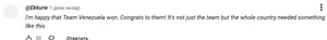 — Счастлив, что Венесуэла победила, поздравляю! Не только команда, но и вся страна нуждалась в чем-то подобном.