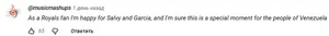 — Как фанат «Роялс», я рад за Салви [Сальвадора Переса, легендарный венесуэльский кетчер] и [Майкела] Гарсию [MVP турнира]. И я уверен, что это особенный момент для народа Венесуэлы.