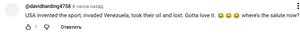 — США изобрели этот вид спорта, вторглись в Венесуэлу, забрали их нефть и проиграли. Такое не может не нравиться. 😂😂😂 А где теперь салют?