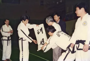— Да, он подарил мне ее во время того визита. Помню, как уже в России расстелил на полу и дописывал. Шаблон, конечно, был готов, но многое доделывалось на месте, написал «таэквон-до» по-корейски. Он далеко не всем так пишет!