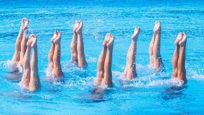 Во время представления 230 спортсменов одновременно выполнили элементы синхронного плавания на задержке дыхания, а затем 243 участника составили самый большой флаг России на воде.