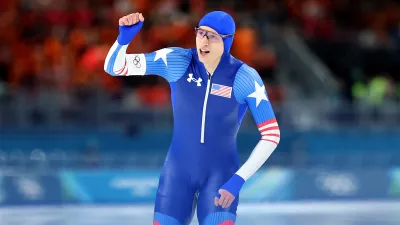 Американский конькобежец Джордан Штольц стал олимпийским чемпионом.