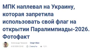 В самом материале украинского издания говорится: «Международный паралимпийский комитет (МПК) использовал флаг Украины на церемонии открытия Игр-2026, несмотря на запрет со стороны «сине-желтых». Представители нашей страны, как и сообщалось, бойкотировали шоу из-за допуска к турниру россиян и беларусов с их национальной символикой. В МПК решили не обращать внимание на требование Национального паралимпийского комитета Украины не использовать флаг страны на церемонии. С сине-желтым стягом на арене в Вероне вышли волонтеры. «НПК Украины заявляет, что украинская паралимпийская команда и НПК Украины бойкотирует церемонию открытия XIV зимних Паралимпийских игр и требует не использовать украинский флаг на церемонии открытия Паралимпиады-2026!» — писали в нашем комитете накануне старта Игр».