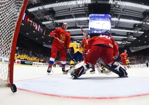 Русских били в лицо и укладывали на лед, они в ответ целовали герб страны. Фото полуфинала МЧМ